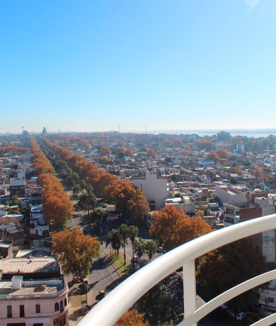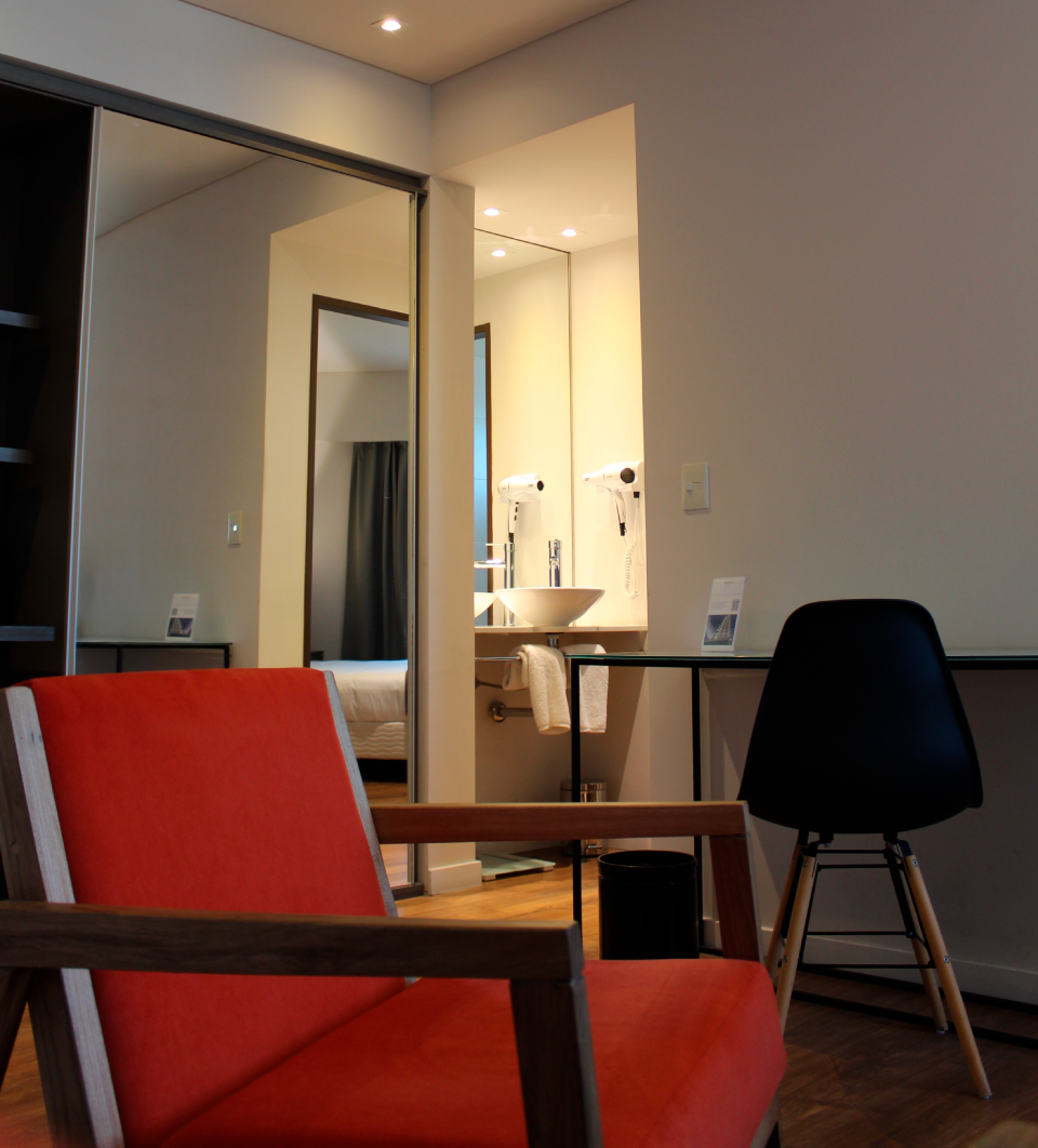 Nuestras suites Corner son de las más espaciosas. Se dividen en un living independiente del cuarto de descanso. Combinan diseño, comodidad y tecnología. Cuentan con escritorio de trabajo para satisfacer a nuestros huéspedes más exigentes. Con vistas de 240° a la ciudad de Rosario y el río Paraná.